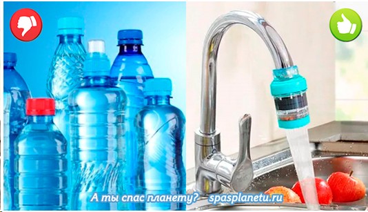 3. Каждый человек ради спасения планеты может покупать очистные фильтры для воды. В этом случае не нужно будет тратиться на привозную бутилированную питьевую воду из пластика. Так не только экономится семейный бюджет, но уменьшается вредное влияние на экологию, вызванное производством бутылок и их транспортировкой.